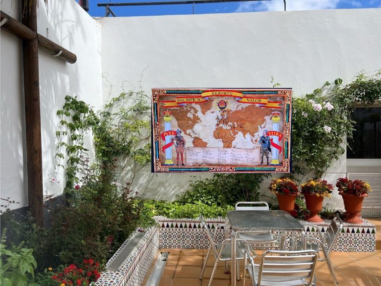 - en el centro del retablo un mapamundi donde aparecerán marcados con picas, las principales batallas del Regimiento a lo largo de la Historia